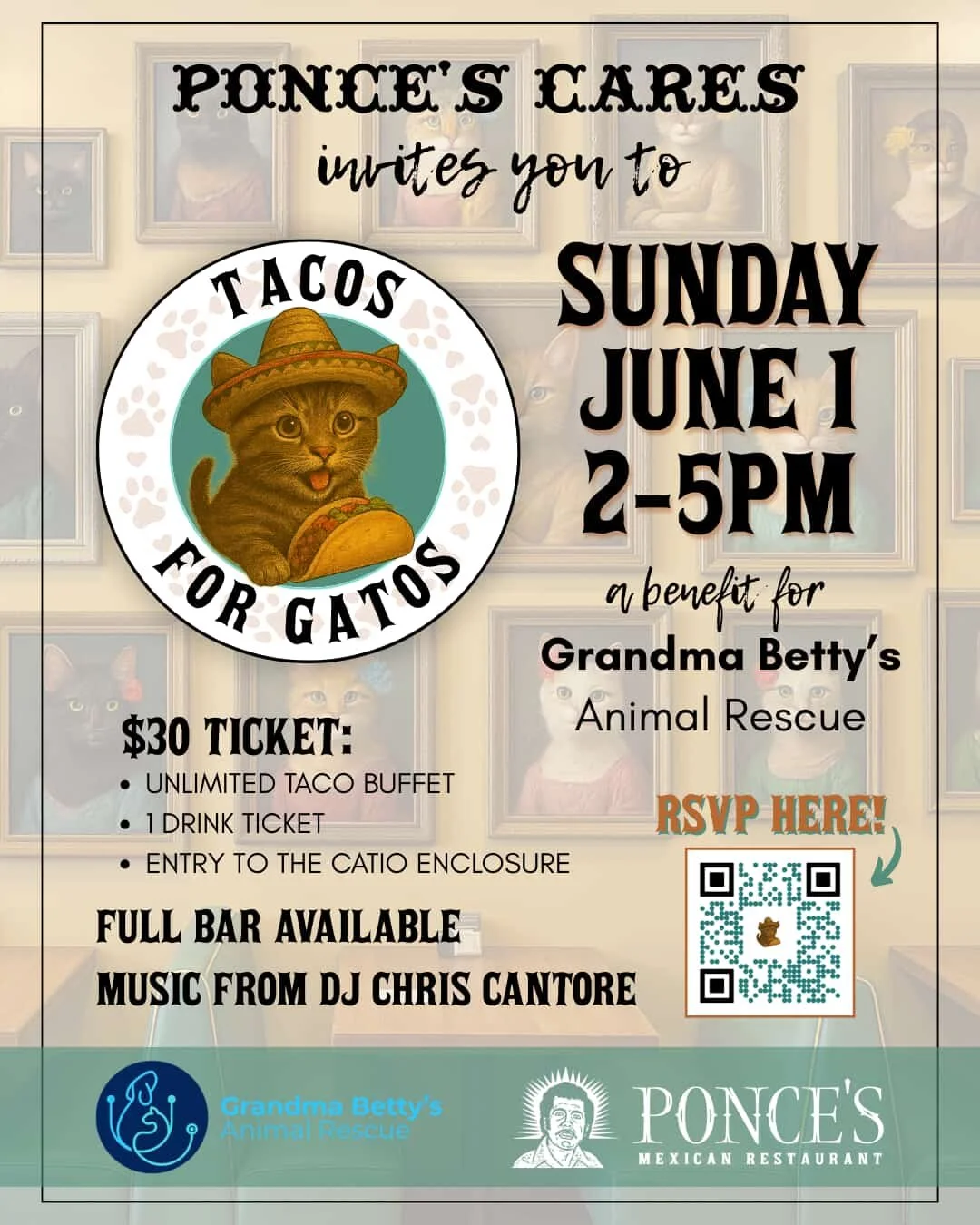 Grandma Betty’s Events TACOS FOR GATOS: Una Mas on Adams TACOS FOR GATOS: Burning Beard Brewery TACOS FOR GATOS: Ponce’s Mexican Restaurant
